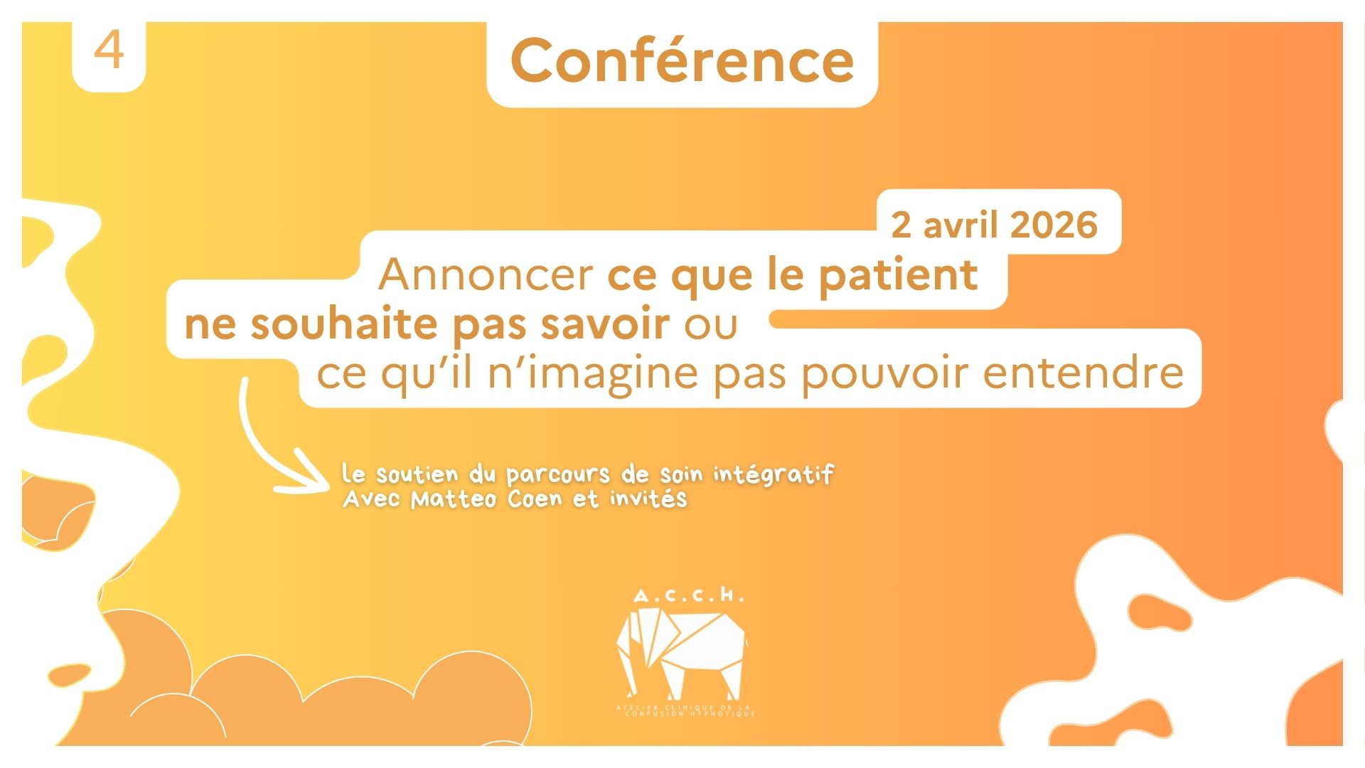 A.C.C.H./Conférence n°4 | Annoncer ce que le patient ne souhaite pas savoir ou ce qu’il n’imagine pas pouvoir entendre [2025-2026]