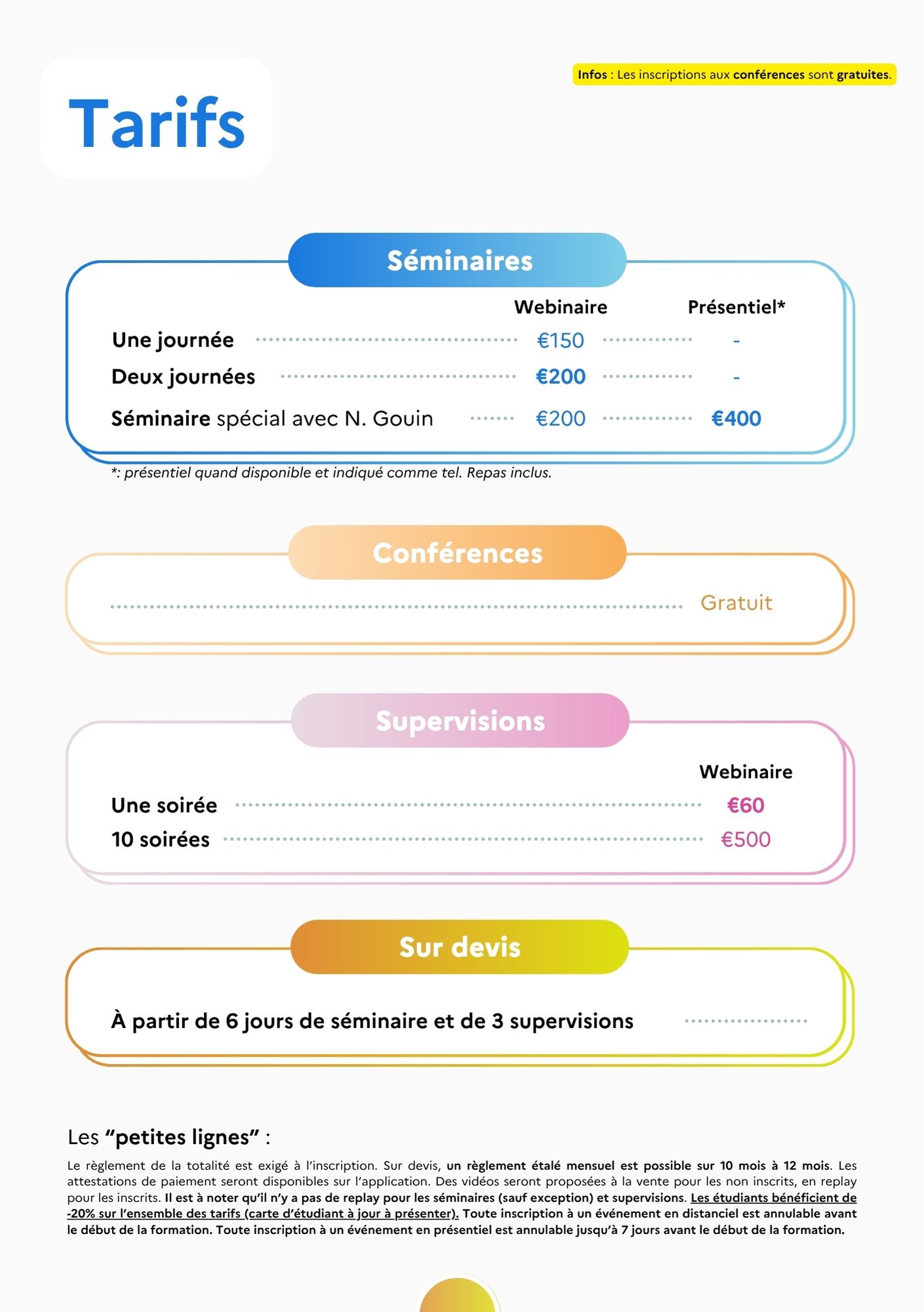 Les conférences, séminaires et supervisions sont accessibles indépendamment.